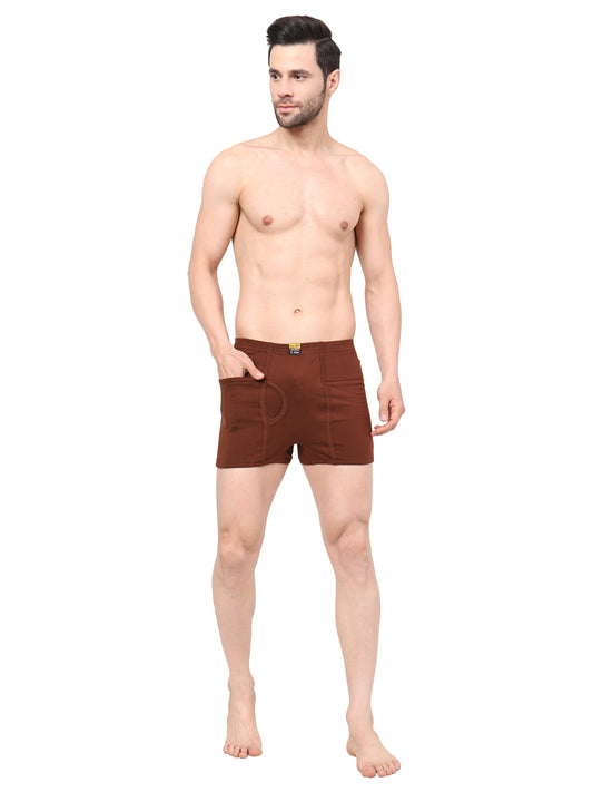Men 100% Cotton Inner Elastic Pocket Trunk Maroon Brother IE Pack of 2