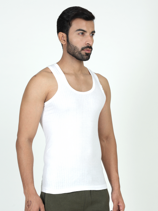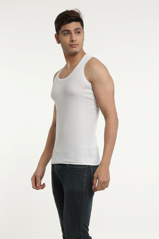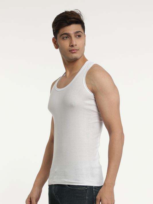 Men 100% Cotton White Rib Fabric Vest Durby- Pack of 2