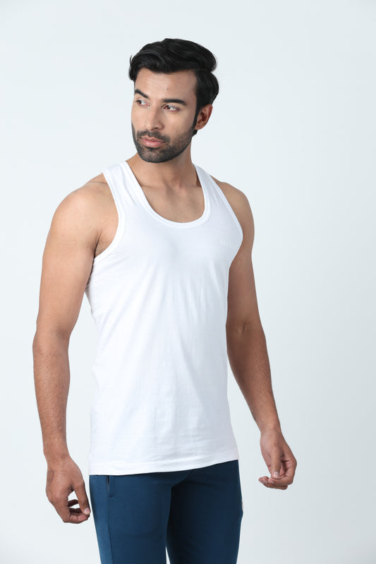 Men 100% Cotton White Vest RN Indigo - Pack of 2