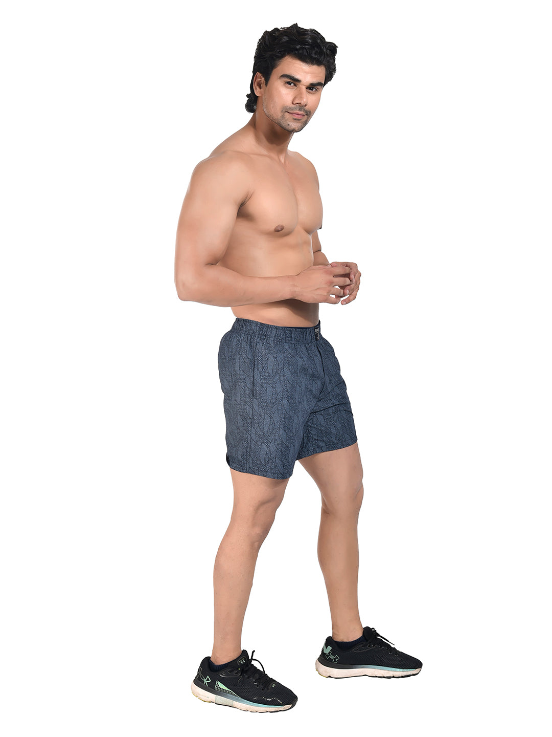 Men Woven Boxer Shorts Navy Leaf